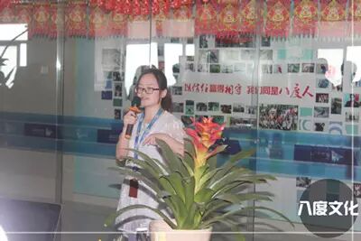 八度网络5月12日起开始了新的晨会方式:由每位员工轮流当“老师”,带领全体员工进行《弟子规》的学习,其中穿插小故事和自己的心得体会。这样的诵读国学经典的活动在八度内部曾经举办过多次,《弟子规》背诵大赛、书友会等形式都受到了员工们的欢迎,而对于采用学习《弟子规》晨会方式,八度汪总说,公司专门购买了学习读本,他要求员工们用心理解书中的每一句话并与同事们分享,希望古老文化和文明中最精华的部分可以在员工心里扎根。